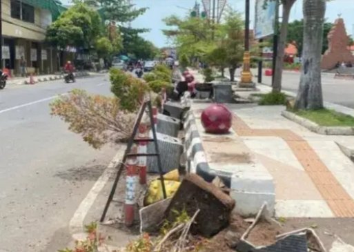 Seiring meningkatnya tensi, aksi perusakan terjadi di sejumlah titik area alun-alun. Beberapa fasilitas publik dilaporkan mengalami kerusakan, di antaranya kursi taman, pagar pembatas, tempat sampah, lampu hias, hingga pot bunga. Tidak hanya itu, papan informasi serta ornamen bola yang menjadi salah satu ikon kawasan tersebut juga turut terdampak.