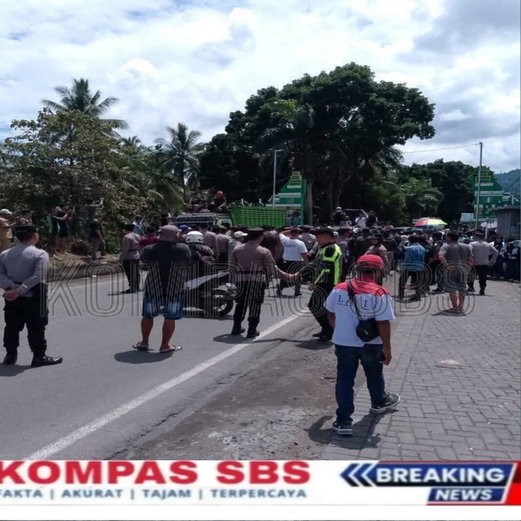 Sulawesi Utara, Kompas-Ratusan warga yang tergabung dalam Ormas Adat Laskar Bogani Indonesia (LBI) menggelar aksi unjuk rasa di perbatasan Bolaang Mongondow–Minahasa Selatan, Desa Mondatong, Kecamatan Poigar, Senin (9/2/2026).