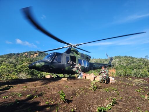 Kompas.sbs Tapanuli Utara – Droping logistik lewat udara menggunakan Helikopter Bell 1 Shorty menyalurkan bantuan bagi warga terdampak bencana alam di Desa Lobu Singkam, Kecamatan Sipoholon, Kabupaten Tapanuli Utara, Sumatera Utara, Sabtu (3/1/2026). Helikopter tersebut berhasil mendarat dengan aman di titik pendaratan (landing zone) desa setempat.