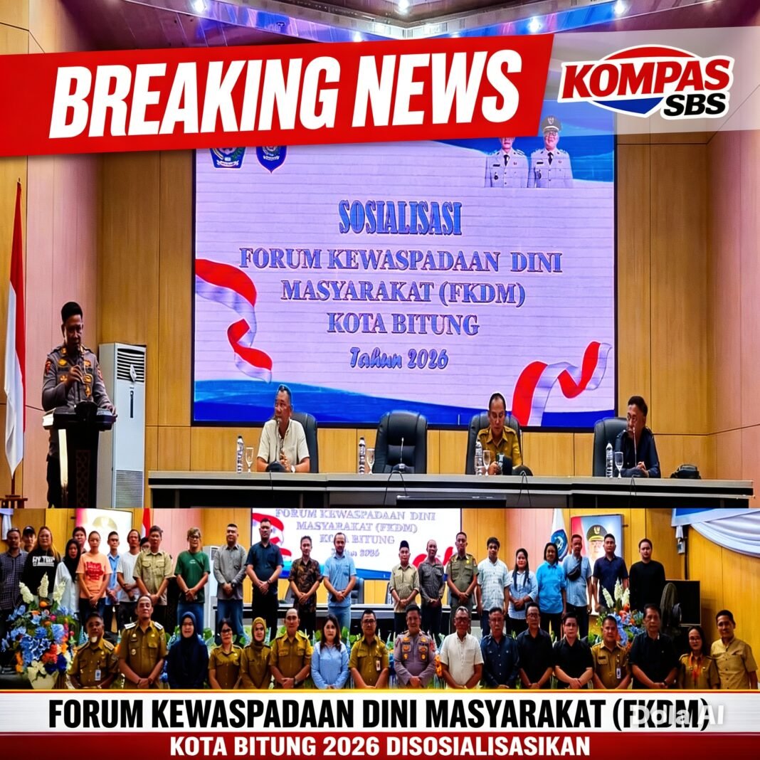 Kepala Bagian Operasional Polres Bitung AKP Novrianto Sadia, di dampingi  kasat intelkam Polres Bitung AKP Slamet menghadiri acara kegiatan Sosialisasi Forum Kewaspadaan Dini Masyarakat (FKDM) Tahun 2026.