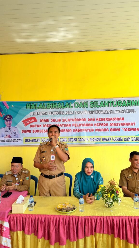 Tanjung Enim lansir kompas.sbs – Pemerintah Kelurahan Pasar Tanjung Enim, Kecamatan Lawang Kidul, Kabupaten Muara Enim menggelar kegiatan Halal’ bihalal dan Silaturahmi di Aula Kantor Lurah Pasar Tanjung Enim, Selasa (8/4/2026).