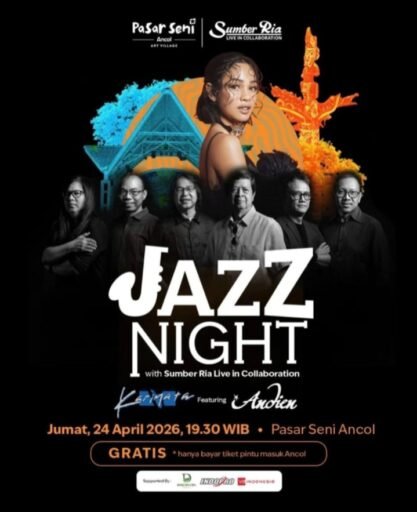 Jakarta,Kompas.Sbs- Jumat (24/4/2026) Kawasan Pasar Seni Ancol kembali menunjukkan denyut kreativitasnya dengan menghadirkan rangkaian acara seni dan budaya yang segar dan inspiratif, Momentum International Jazz Day dimanfaatkan oleh PT Pembangunan Jaya Ancol Tbk untuk menggelar dua agenda spesial sekaligus: pertunjukan musik “Jazz Night with Sumber Ria Live in Collaboration featuring Andien” serta pameran seni bertajuk “Pura Pura Rupa”.