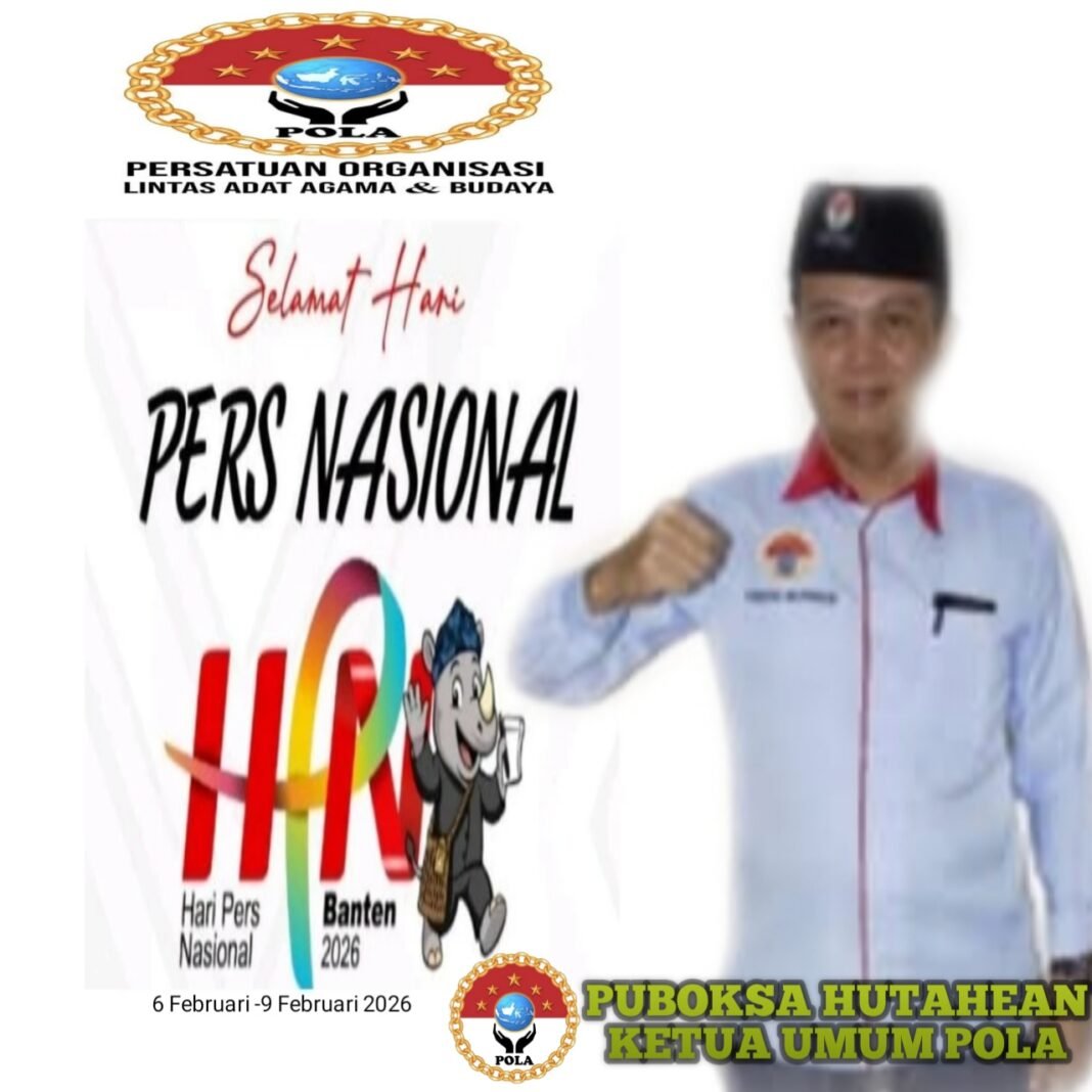 Persatuan organisasi lintas adat agama dan budaya Puboksa Hutahaean secara khusus menyampaikan ucapan Selamat Hari Pers Nasional 2026 sebagai bentuk pengakuan atas kontribusi pers dalam kehidupan demokrasi.