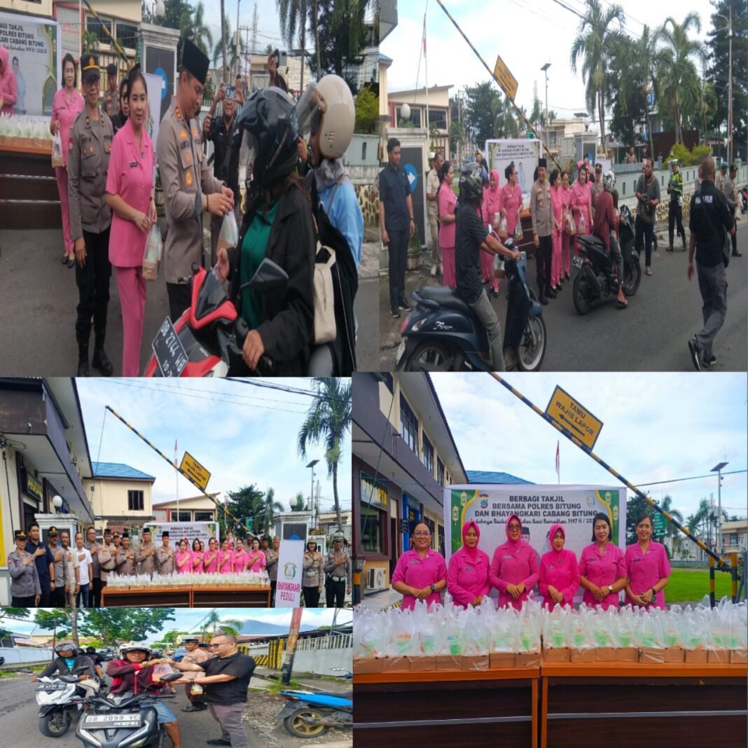 Pembangian Takjil di lakukan Polres Bitung dan Bhayangkari Cabang Bitung mengangkat tema ” INDAHNYA BERBAGI DI BULAN SUCI RAMADHAN 1447 HIJRIAH,2026 MASEHI.