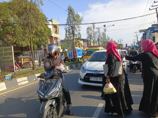 Puluhan ibu-ibu anggota pengajian Majelis Taklim Halimah Sumatera Utara dan Kabupaten Langkat tampil begitu antusias dan penuh semangat. Mereka tidak hanya membagikan takjil, tapi juga menyapa dan berbagi doa kepada penerima, menciptakan momen kebersamaan yang hangat di tengah hiruk-pikuk jalan raya.