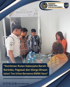 KABANJAHE KARO,Kompas.SBS|Rutan Kelas IIB Kabanjahe kembali menegaskan komitmennya dalam mewujudkan lingkungan pemasyarakatan yang bersih dari narkoba. Hal tersebut diwujudkan melalui pelaksanaan tes urine terhadap pegawai dan warga binaan yang bekerja sama dengan Badan Narkotika Nasional Kabupaten (BNNK) Karo.