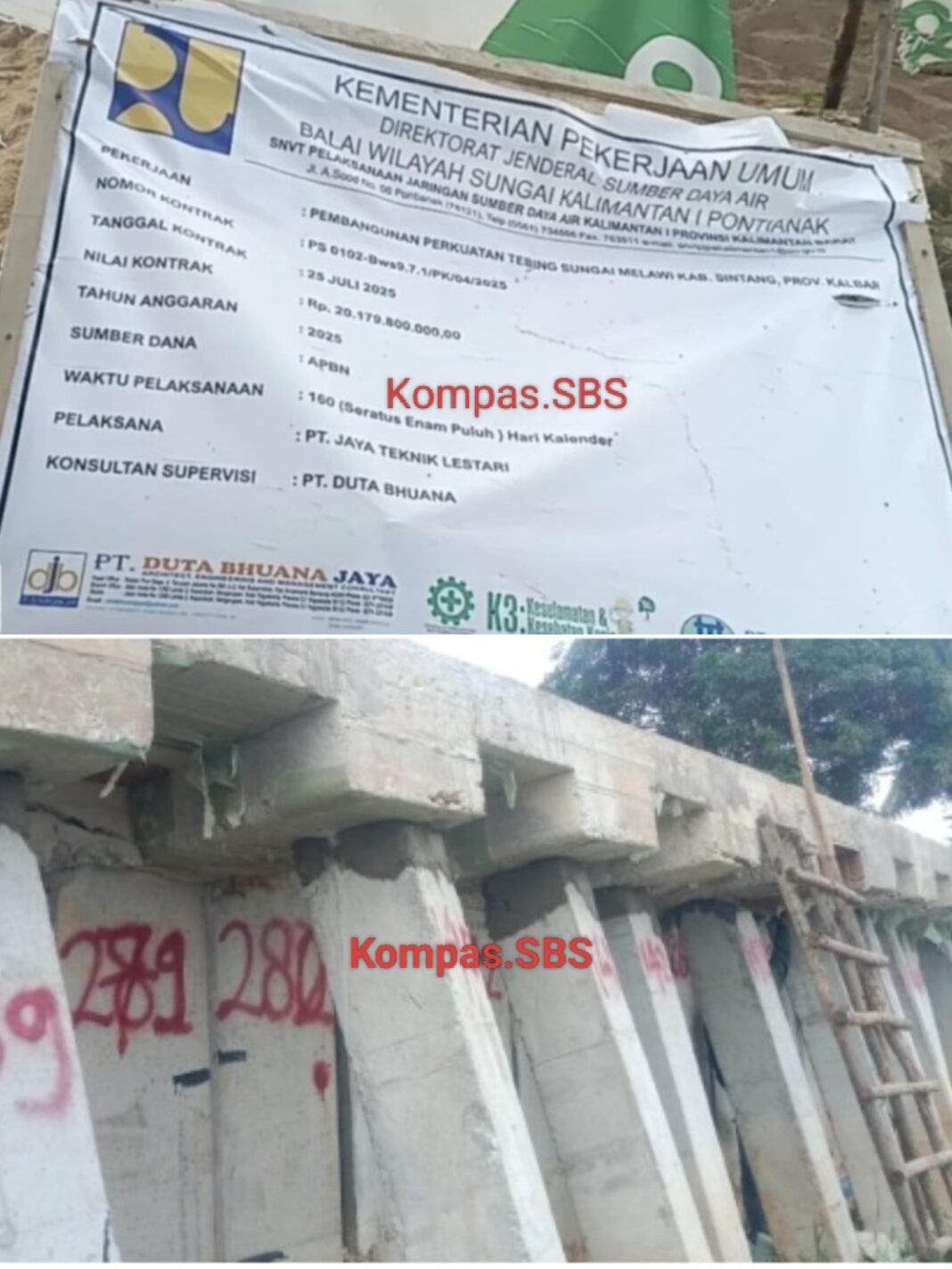 KALBAR, Sintang: Proyek pembangunan tebing Sei Melawi Kabupaten Sintang kembali jadi buah bibir masyarakat. Mereka menilai paket basah kuyup segede Rp. 20 Miliar itu dikerjakan asal asalan, tidak sesuai bestek atau spesifikasi tehnis.