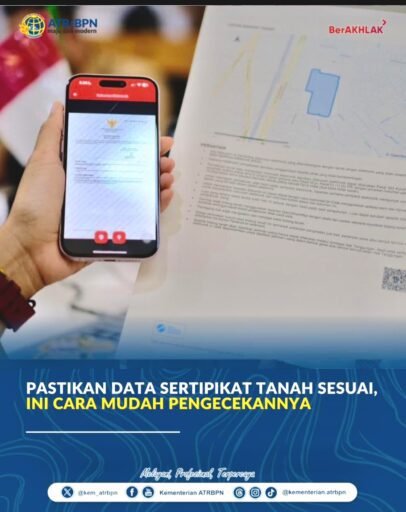 Jakarta – KOMPAS.,Masyarakat kini bisa memastikan kesesuaian data sertipikat tanah secara lebih mudah tanpa harus datang ke Kantor Pertanahan. Melalui layanan digital yang disediakan Kementerian Agraria dan Tata Ruang/Badan Pertanahan Nasional (ATR/BPN), pengecekan dapat dilakukan hanya melalui _smartphone_.