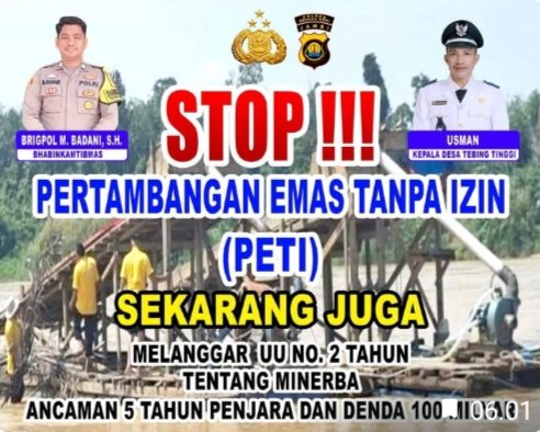 Dengan adanya peringatan ini, diharapkan aktivitas PETI di Desa Tebing Tinggi dapat dihentikan, sehingga lingkungan tetap terjaga dan kehidupan masyarakat menjadi lebih aman dan nyaman. (Msr)