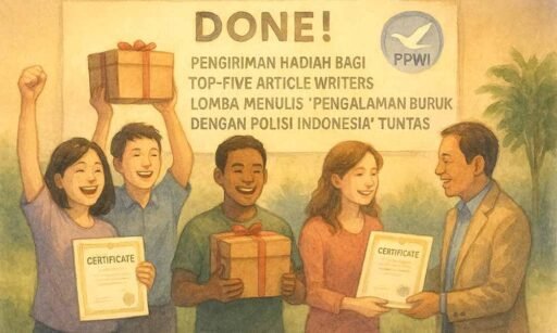 Medan, kompas.sbs – Proses pengiriman hadiah bagi lima penulis artikel terbaik dalam lomba menulis bertema “Pengalaman Buruk dengan Polisi Indonesia” yang diselenggarakan oleh Persatuan Pewarta Warga Indonesia (PPWI) telah resmi tuntas hari ini, Sabtu, 20 Desember 2025. Kelima penulis yang terpilih sebagai pemenang telah menghubungi Sekretariat Nasional PPWI untuk konfirmasi data pengiriman.