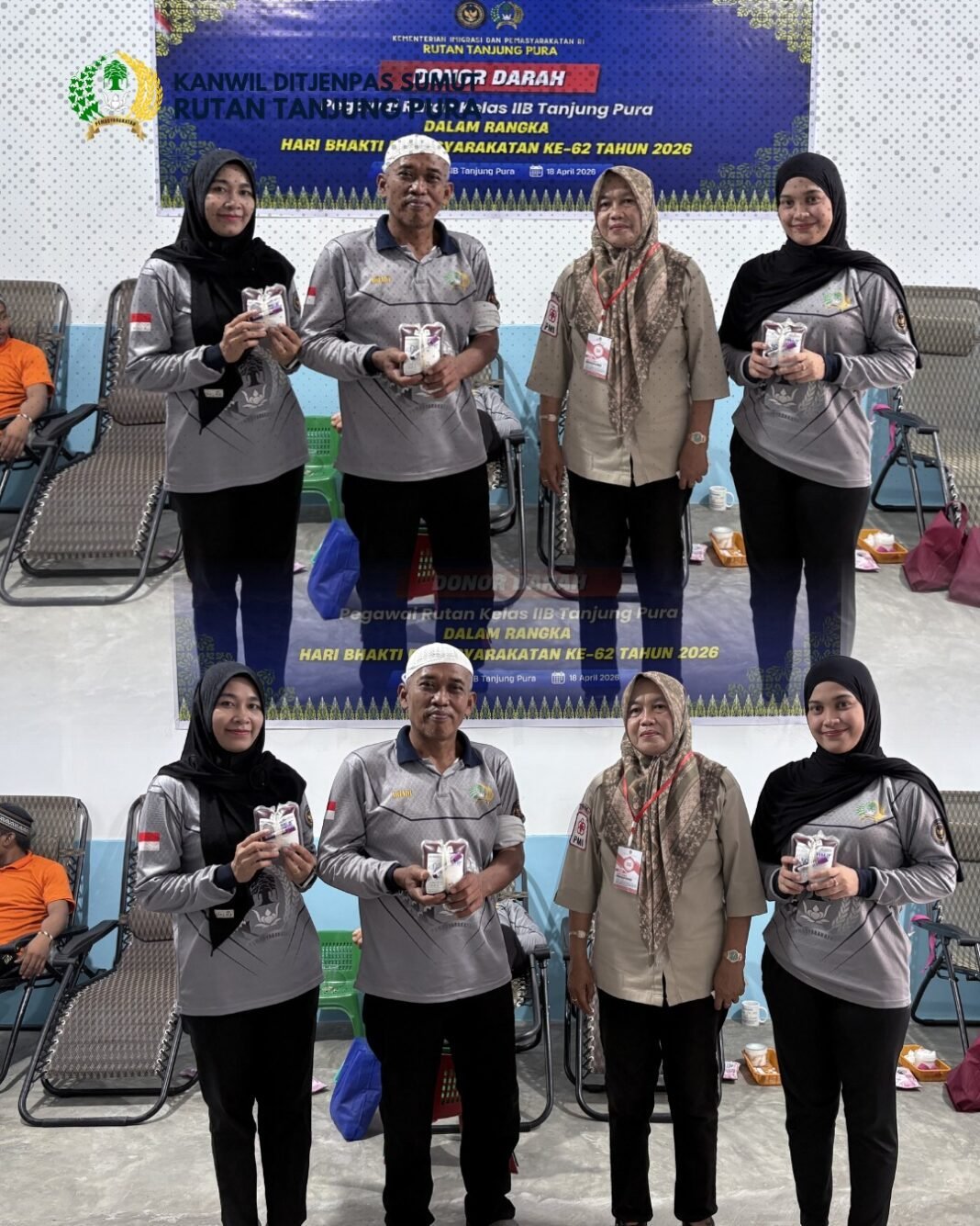 Dalam rangka memperingati Hari Bakti Pemasyarakatan (HBP) ke-62 Tahun 2026, Rumah Tahanan Negara (Rutan) Kelas IIB Tanjung Pura menyelenggarakan kegiatan donor darah bagi seluruh pegawai, Sabtu (18/4/2026). Kegiatan ini merupakan wujud nyata kepedulian sosial insan pemasyarakatan sekaligus bagian dari rangkaian acara bertema “Pemasyarakatan Kerja Nyata Pelayanan Prima”.