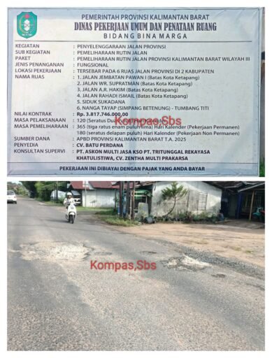 Paket daging empuk, pemeliharaan jalan Propinsi Kalimantan Barat Wilayah III sebesar Rp. 3M 800 Juta oleh CV Batu Perdana, realisasinya dituding asal – asalan, melanggar peraturan bestek dan banyak celah can tepi dikedua belah fihak.