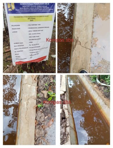 Kalbar, Kubu Raya : Satu lagi proyek P3-TGAI milik aspirasi DPR-RI jadi sorotan masyarakat. Paket basah kuyup irigasi yang katanya digaraf Gapoktani Krida Jaya dan Taman Tani Desa Tebang Kacang Kecamatan Sei Raya Kabupaten Kubu Raya, dinilai jauh dari mutu.