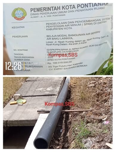 Paket bangunan air bersih atau air baku tahun anggaran APBD 2025 milik PUPR Kota Pontianak, yang digarap oleh CV. Empat Saudara Berkah, dianggap jauh dari cerminan kualitas maupun kwantitas.