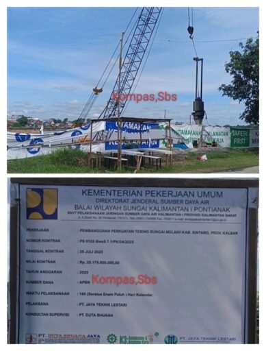 Kalbar, Sintang : Masyarakat pesimis, dengan waktu yang relatif singkat, mustahil proyek pembangunan perkuatan tebing sungai Melawi segede Rp. 20 Miliar, milik BWSK 1, bisa selesai tuntas.