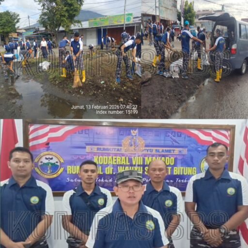 Kegiatan yang kami laksanakan di jalan Samratulangi pusat kota bitung dan di libatkan personil 65 RS. AL kota bitung, dalam hal ini kami memberikan komitmen terhadap kesehatan masyarakat rumah sakit bahwa kesehatan itu bukan hanya di dalam rumah sakit tetapi kesehatan itu juga harus dari lingkungan yang bersih itu juga bagian dari upaya preventif kami dalam menjaga kesehatan di sekitar masyarakat kota bitung,” Kata Mayor Laut (K) dr. Birril Qudsi, Sp.B-Onk (K) saat di Wawancarai awak media ini Jumat (13/02/2026).