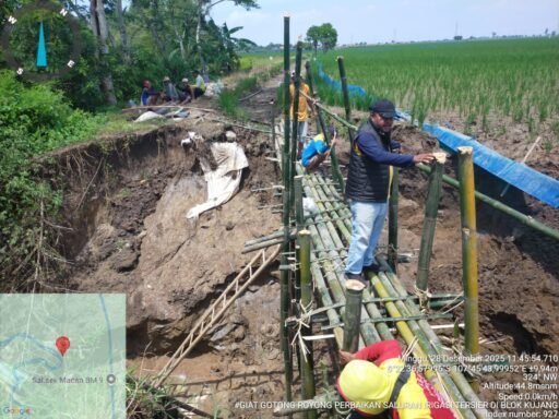 Subang – Upaya penanganan sementara dilakukan oleh UPTD Pertanian (Unit Pelaksana Teknis Daerah Pertanian) bersama PPL Muspika Cikaum , petani, dan pemdes melaksanakan Gotong royong untuk memperbaiki saluran tersier dari hulu BM IX, yang melewati hamparan sawah 3 Desa, Desa Tanjungsari Timur, Tanjungsari Barat, Dan Desa Mekarsari Kecamatan Cikaum Kabupaten Subang.