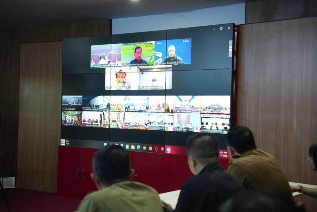 Rapat strategis berskala nasional ini dipimpin langsung oleh Menteri Dalam Negeri Republik Indonesia, Jenderal Pol. (Purn.) Prof. Drs. H. Muhammad Tito Karnavian, B.A., M.A., Ph.D., dan dilaksanakan secara daring melalui Zoom Meeting dari Ruang Command Center Kantor Bupati Minahasa, sebagai pusat kendali dan pengambilan keputusan strategis daerah.